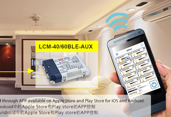 讓照明變得智能化、方便化將是LED照明產(chǎn)業(yè)的發(fā)展趨勢,明緯針對室內(nèi)照明電源,開發(fā)可搭配藍芽連網(wǎng)(Bluetooth Mesh)控制的LED電源LCM-40/60-BLE,讓使用者可以透過一般的手機或平板計算機就可以達到智能化的照明控制。