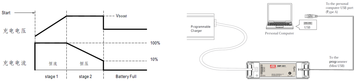 圖4 HEP-1000充電曲線與SBP-001程序編程器配置圖