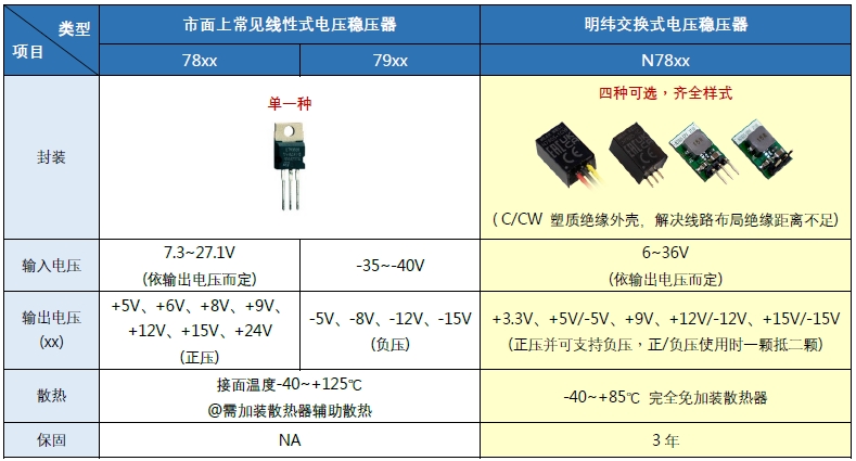 此外,N78xx另有多項優(yōu)于78xx/79xx的特點(diǎn)詳如下表: