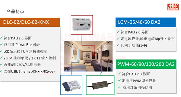 而在布局符合“DALI-2”規(guī)范產(chǎn)品的腳步上,明緯的速度從未趨緩,在競爭對手中為產(chǎn)品線布局完整的前段領(lǐng)先者。 去年與今年皆陸續(xù)推出具有“DALI-2”認(rèn)證規(guī)范的LCM/PWM-DA2系列驅(qū)動電源產(chǎn)品與今年度即將推出的DLC-02 DALI-2 控制器,將提供一個(gè)完整的數(shù)字照明系統(tǒng),也展現(xiàn)明緯將跨入數(shù)位照明系統(tǒng)的決心。