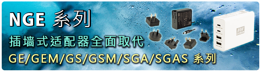 明緯適配器 (Adaptor) 產(chǎn)品線擁有插墻式及桌上型 2 大類(lèi),插墻式 <60W 舊世代產(chǎn)品 GE / GEM / GS / GSM / SGA / SGAS 系列已于 2024.1 公告新案不建議再采用舊品 (NRND) , 舊系列將自 2024.7 起下市。插墻式即日起全面改推 NGE 系列、桌上型產(chǎn)品 GST / GSM / OWA 系列續(xù)售。