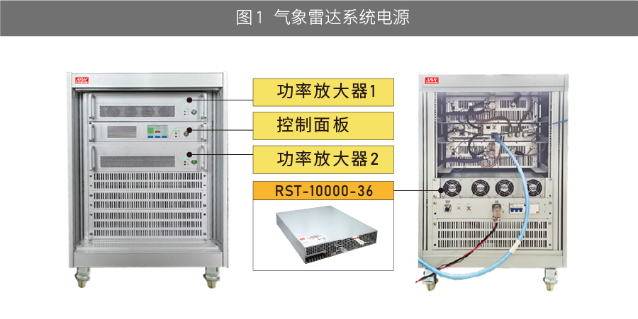 如下圖 1 為氣象雷達系統(tǒng)電源應用,負載為射頻功率放大器。使用明緯 RST-10000-36 + 15U 機柜,組合成一套完整氣象雷達系統(tǒng)電源,采用模擬警報訊號,以監(jiān)控電源工作狀態(tài)。