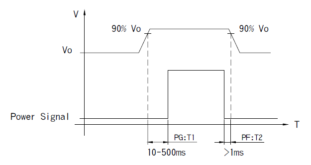 Power Fail:指輸出低于90%額定電壓前,提前1ms 以上將TTL 訊號關(guān)閉。